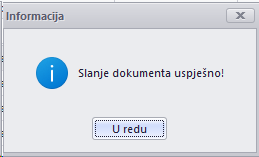 Ako se račun pošalje uspješno pojaviti će se poruka: