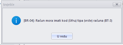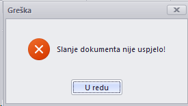 Ako se račun ne može poslati zbog nedostataka, pojaviti će se poruka s opisom greške: