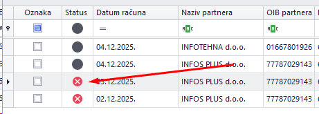 Nakon greške na Status oznaci će se pojaviti cveni x.